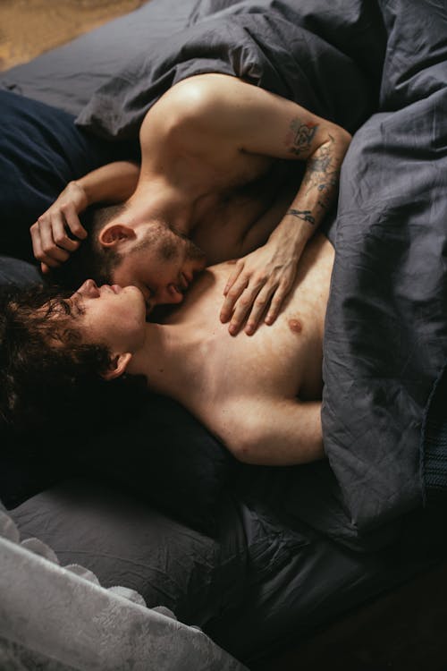 I grabbed us both a pint of water with ice from the kitchen and headed upstairs. It was 4pm at this point! Wow I was shattered. I walked down the hall to the guest bedroom and pushed open the door. Harry was just taking off his briefs, he slipped them down and stood back up naked. “Hi” he said softly as i passed him the water. I didn’t know what to do at this moment. Should I get in the bed with him? Leave him alone and go to my room? I really wanted to sleep along side him. Was I falling hard for him? Wow so many questions running through my mind. Was it just because I was drunk? Would he act differently in the morning? I shook myself and before I could talk he said with a cheeky grin “I usually sleep on this side. Not sure which side you wanted?” “I’m easy going, I will be right back.” I put my water down and went to my room and undressed. Naked I walked back into the spare room. He was under the duvet laying down on his side. He pulled back the covers on my side and tapped the sheet. I slipped in and he threw the cover over me, before pulling me into him with his arms. I put mine around his back. He wrapped his legs I between mine grabbed my ass and pulled me closer. Our Dicks touching and both getting erect. Again! He then kissed me softly on the lips. “Night handsome” he said with a whisper. “Night sexy!” I replied. He closed his eyes and gripped me tight. I could feel his breath on my face. It was comforting knowing that there was no expectations for anything other than a warm embrace and sleep. Smiling, eyes shut and with a deep sigh of contentment, we both fell asleep quickly.