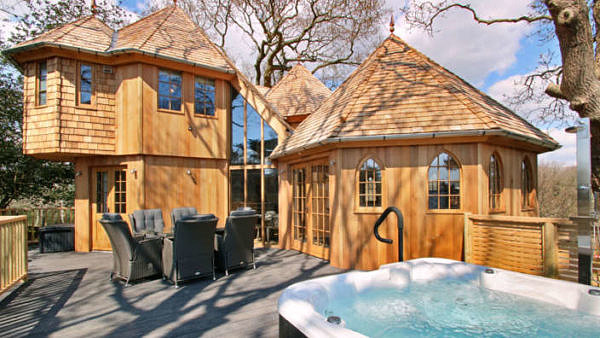 When we both were ready, Harry walked over to me and kissed me on the cheek. “Ready sexy?” He said. I nodded. We locked up and got into his car. “Need the sat nav?” I said. “Nope I got it! Stop trying to ruin the surprise! I know where we are going, it’s a mates place.” “Ok ok!” I replied smiling. I put my hand on his thigh as we drove there. Wow my first romantic getaway with a guy! I was excited. A hour in and where ever we were headed, it was rural. Lovely beautiful country side, lots of hills and trees. Not many places around, I knew the area vaguely, just not the destination. A few miles down the road Harry took a turning that was a bumpy dirt track, hedges really high up, only room for one car. A mile later on the same track and the road went into a wooded forest. There were a few turn offs with little wooden signs with names on. The first said Elf Creek, the second said Witches nook, the third one said Trolls bridge. We continue forward as the lane ended, we arrive at dead end, with t section. Harry pulled up the car into one of them. There was a sign in front of a path, leading into the woods. It said Fairy’s Meadow. I honestly thought he was taking the piss at this point and we both laughed! What the hell? I couldn’t see anything apart from woods? Harry’s said still laughing, “We are here! Quite appropriate for us two fairies!” “What the hell Harry? Where are we staying?” I said, I was quite concerned at this point! “You’ll love it, wait and see babe! Come on!” He replied laughing still. We got out of the car and thankfully it was still light. “I will come back for the bags.” Harry said, holding out one hand. I held his hand and he guided me down through the path. An opening appeared and there it was….. a beautiful big wooden tree house lodge, overlooking a grassy meadow! It looked fantastic!