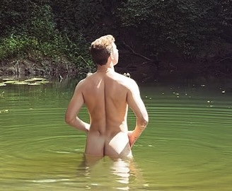 Fuck it! You only live once. I pulled down my shorts and boxers and waded into the lake. As I was walking in still exposed, I covered my dick with my hands. Lee swam back out into the water and then turned around smiling at me. “Refreshing isn’t it!” He shouted. “Cold! But very nice!” I replied. Once I was in over my waist, I swam around too. It felt so exhilarating being naked and free. I had never skinny dipped before and my dick was hard as a rock, it obviously was Turing me on. We both swam around for what felt like ages. After quite a while Lee started head back out of the lake to the shore. I decided to stay back a while, as I was still hard. I watched as he left the water, his bare bum exposed to me as he walked out. That didn’t help my hard dick situation any! I couldn’t walk out with an erection. With his back still facing me he bent down and grabbed a towel out his bag. His ass cheeks spread as he bent over exposing his beautiful pink anus hole. Again not helping my wood situation. He stood upright and started to dry himself, turning to his side. I couldn’t believe my eyes, His cock was as hard as mine standing directly outward to attention. Fuck he looked sexy. He turned his head towards me as he dried his hair, smiling.