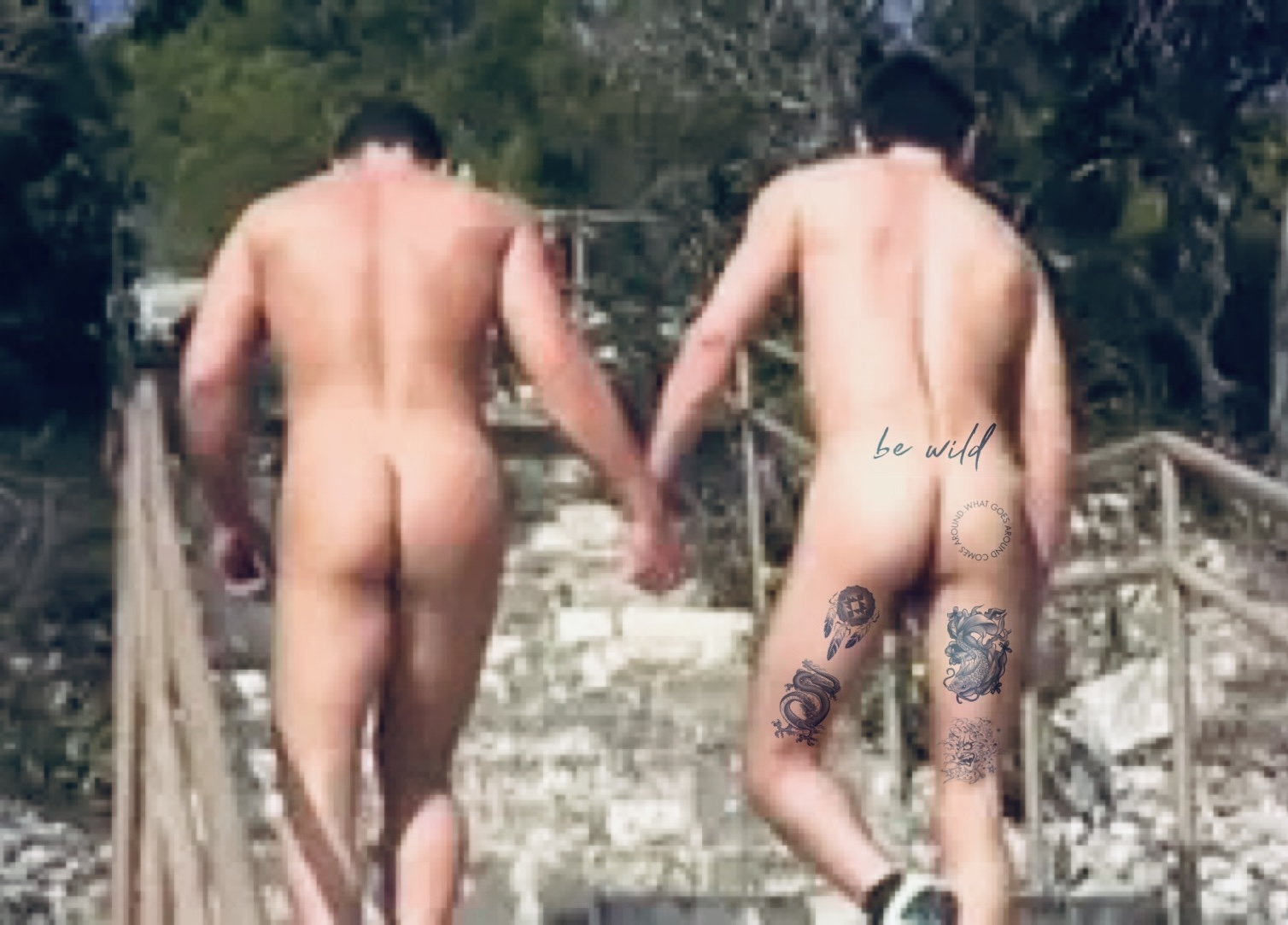 When we arrived at the stream (still both naked) we took off our foot wear and walked around in the water. I couldn’t believe how clear the water was. You could see all the little fish swimming around. We just stood next to each other and watched for a while, the cool water on our feet and legs was refreshing. Suddenly Lee grabbed his penis and started to have a wee in the stream. In all honesty I needed one too and quickly followed. Lee messing around crossed our piss streams, making lightsaber noises. I joined in, it was like we had both regressed to our childhood days. We both laughed as we ran out of juice. “I needed that!” He said. “Yeah me too buddy.” I replied. We sat down on a rock with our feet in the water, enjoying the sunshine. It was so quiet out here “So… why did you and your ex split up then?” Lee asked. “Ah you know the usual, drifting apart, lack of intimacy and sex. Amidst other things. What about you?” I asked. “Ah she was sleeping around, just fell out of love I suppose. I miss the sex though. You ever been with a girl?” Said Lee. “Sure when I was younger, just prefer a guy, sex is so much hotter, but the relationships are just as hard.” I replied kicking my feet in the water. “Haha I will take your word for it. I bet guys give better head than girls though, don’t they? Girls never want to give a blow job” I laughed, was this a come on? Did he want to try it? “Yeah it’s almost like guys know what to do with one, especially when it’s in their mouth. Feels incredible every time, that’s what made me prefer guys. That and fucking a tight hole and being fucked. That definitely hits your erotic zone” I looked at him grinning to see his reaction. I noticed he quickly leaned forward blushing slightly, with his arms on his knees to cover up his crotch area. But it was too late, I had clocked he was getting aroused by the conversation. “Haha again I will take your word for it matey. But I definitely agree to one thing… I love to fuck butts, it does feel fucking good, but finding a girl to let me do it is another thing!” He said laughing. Is that why he brought men here? Did I offer my services at this point? Or just let him speak again. I didn’t want to make things weird or anything.